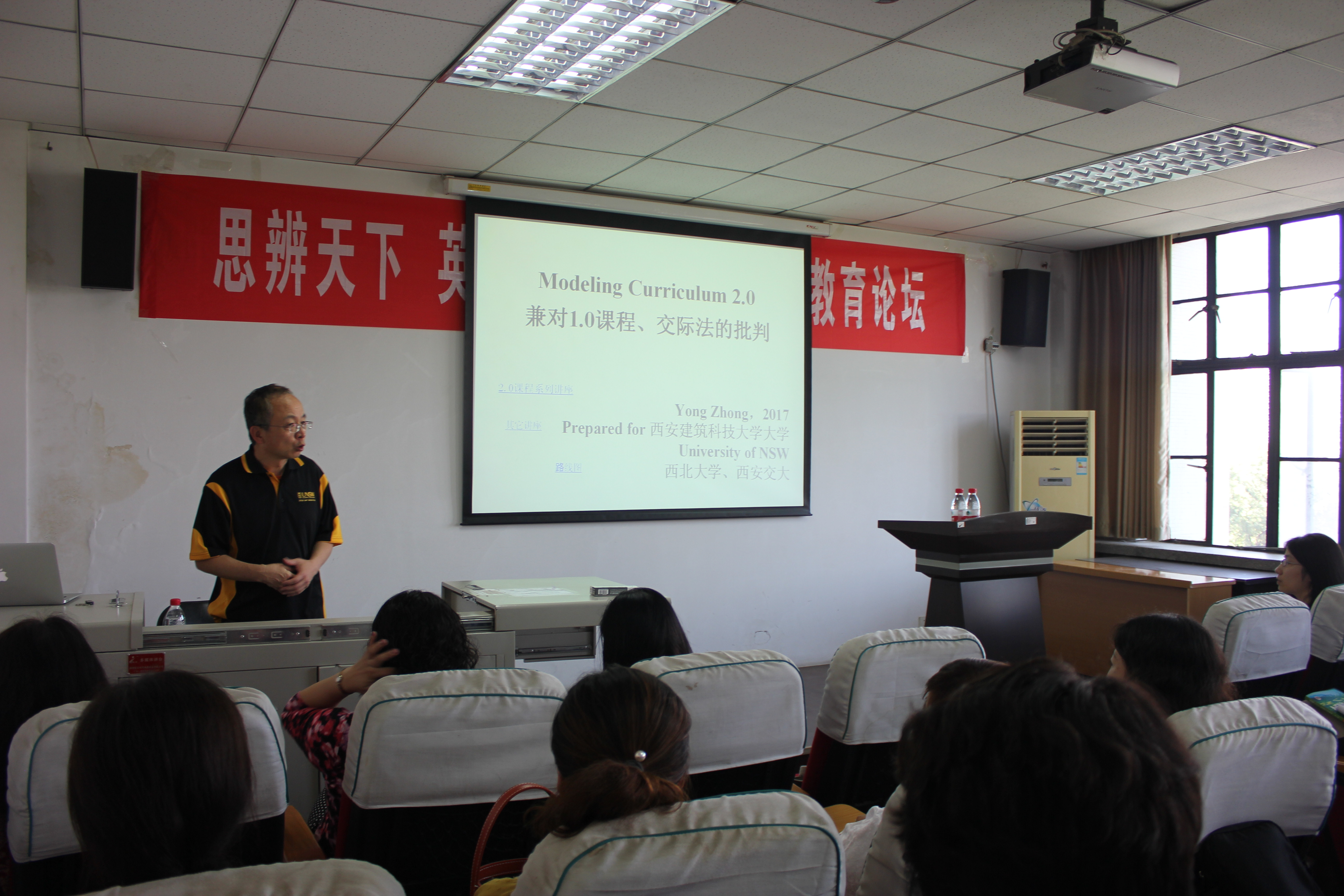 9月11日下午,我们Ray竞技官网特邀新南威尔士高等研究院研究员,我们新聘兼职教授钟勇博士在雁塔校区大楼811报告厅作了题为“为2.0众成课程建模”的精彩讲座。此次讲座是我们Ray竞技官网“思辨天下 英满建大”英语思辨教育论坛的开坛讲座,讲座由Ray竞技官网院长杨延龙教授主持,副院长师琳教授及Ray竞技官网各系部教师近70人聆听了此次讲座。