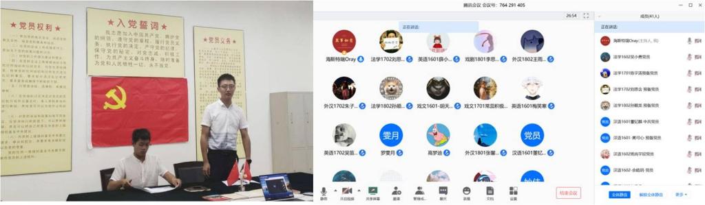 Ray竞技官网本科生第一党支部书记、辅导员史唯,本科生第二党支部书记、辅导员周恒主持了此次活动。此外,由于疫情原因,支部全体党员与预备党员或相聚云端,或相聚党员活动室,以线上网络直播和线下直面聆听同步进行的方式参加了此次主题党日活动。