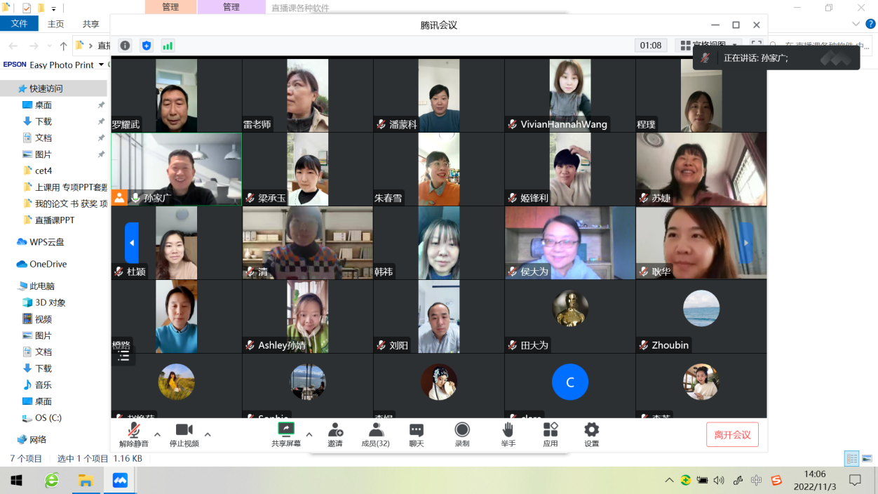本次活动通过线上集中研讨的形式开展,师琳为教师们解读了基础课教师“大练兵”的相关政策及要求,她从学生的综合能力提升、国际化视野、升学就业等方面强调了大学英语四六级考试的重要性,介绍了我们大学英语改革的方向,讲解了ITEST智能测试云平台的使用情况,同时,对如何建立引导学生自主学习的教学模式提出了建议。