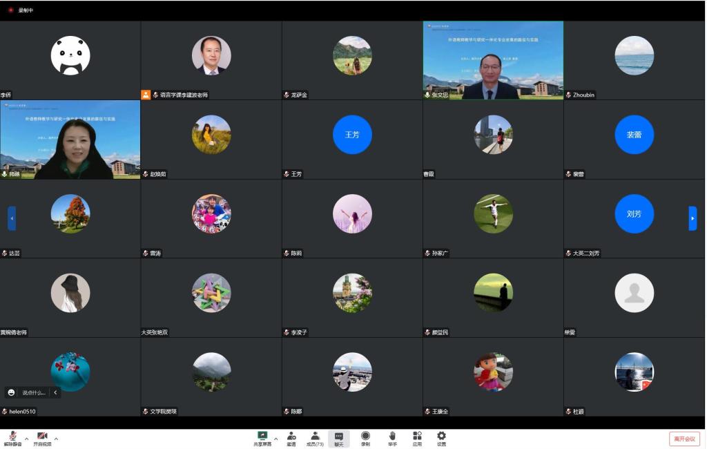 师琳就讲座内容进行了总结,对主讲嘉宾表达了感谢。她表示,张文忠教授强调了在高等外语教育高质量发展的大背景下,外语教师作为高等教育中的一部分,其整体发展的重要性,直接影响着国家外语能力的强弱。外语教师作为教学研究一体化发展的主体,需要深刻认识自身的教学权和发展权,张文忠教授深入细致地解读了教学研究一体化发展的内涵及可行性,在观察总结外语界学者和南开大学教学团队成功范例的基础上主张以外语教学研究一体化原则,通过做精一门课,来弥合“两张皮”,解决外语教师专业发展的难题,尤其以南开大学赋权增能型英语教学团队建设高质量课程《英语研究式学习》开展研究性教学,实现师生共同发展的改革创新实践为例,为与会教师展示了教学与研究一体化成功改革创新的效果,同时也引发了教师对教育教学的反思,开阔了教学科研新思路。