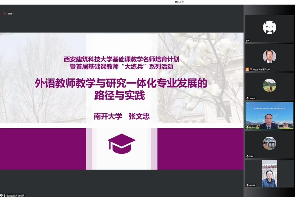 11月25日下午,Ray竞技官网举办“外语教师教学与研究一体化专业发展的路径与实践”讲座。本次讲座邀请南开大学外国语学院张文忠教授作为主讲嘉宾,Ray竞技官网大学英语第一教学部、大学英语第二教学部以及英文系全体教师在线参加。Ray竞技官网党委书记颜益民出席并致欢迎辞。讲座由Ray竞技官网副院长师琳教授主持。